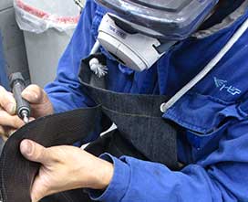 神奈川工場では、カーボンを用いて主にレーシングカーのボディなどを製造しています。ハンドレイアップ・オートクレーブ工法により、熟練の技術者が手作業で一品一品創り上げています。さらに、“熱可塑性樹脂”という新素材の加工技術を駆使し、低コスト・量産が可能な新工法の確立にも取り組んでいます。